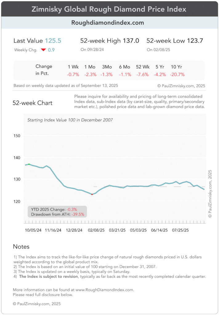 Wykres 1. Ziminisky Global Rough Diamond Price Index.
