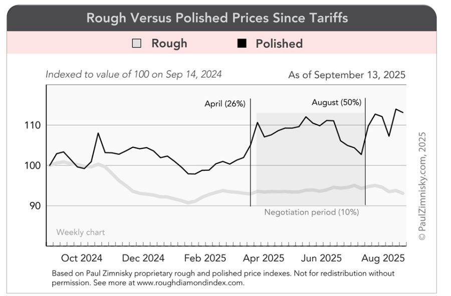 Firmy wydobywające diamenty operują na diamentach nieoszlifowanych, dlatego ich wyniki zależą od cen takich kamieni. Najczęściej ceny diamentów oszlifowanych i nieoszlifowanych zachowują się podobnie. Obecnie można zauważyć lekki rozjazd między nimi, a jak skupimy się na 3 kategoriach, czyli diamentach bezbarwnych w najwyższej jakości, rzadkich kolorowych czy popularnych od kilku kwartałów diamentów o długich kształtach, to dostrzeżemy całkowity rozjazd tych dwóch indeksów cenowych.