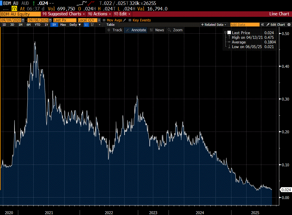 Wykres 2. Kurs akcji Burgundy Diamond Mines